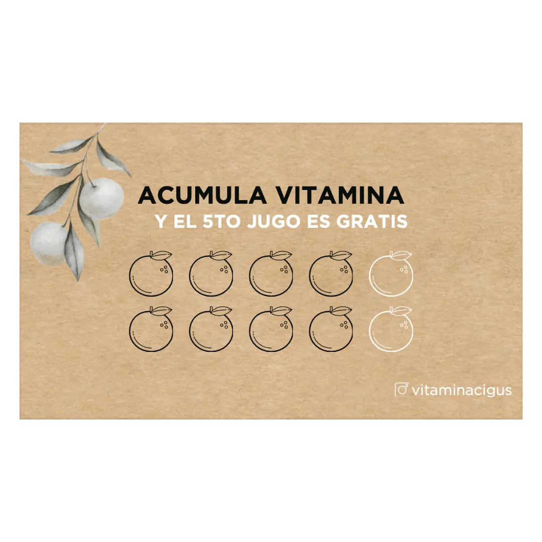 Con nuestras tarjetas de fidelización incentivamos la recompra y premiamos la constancia, logrando que más personas regresen a tu local por su jugo favorito.